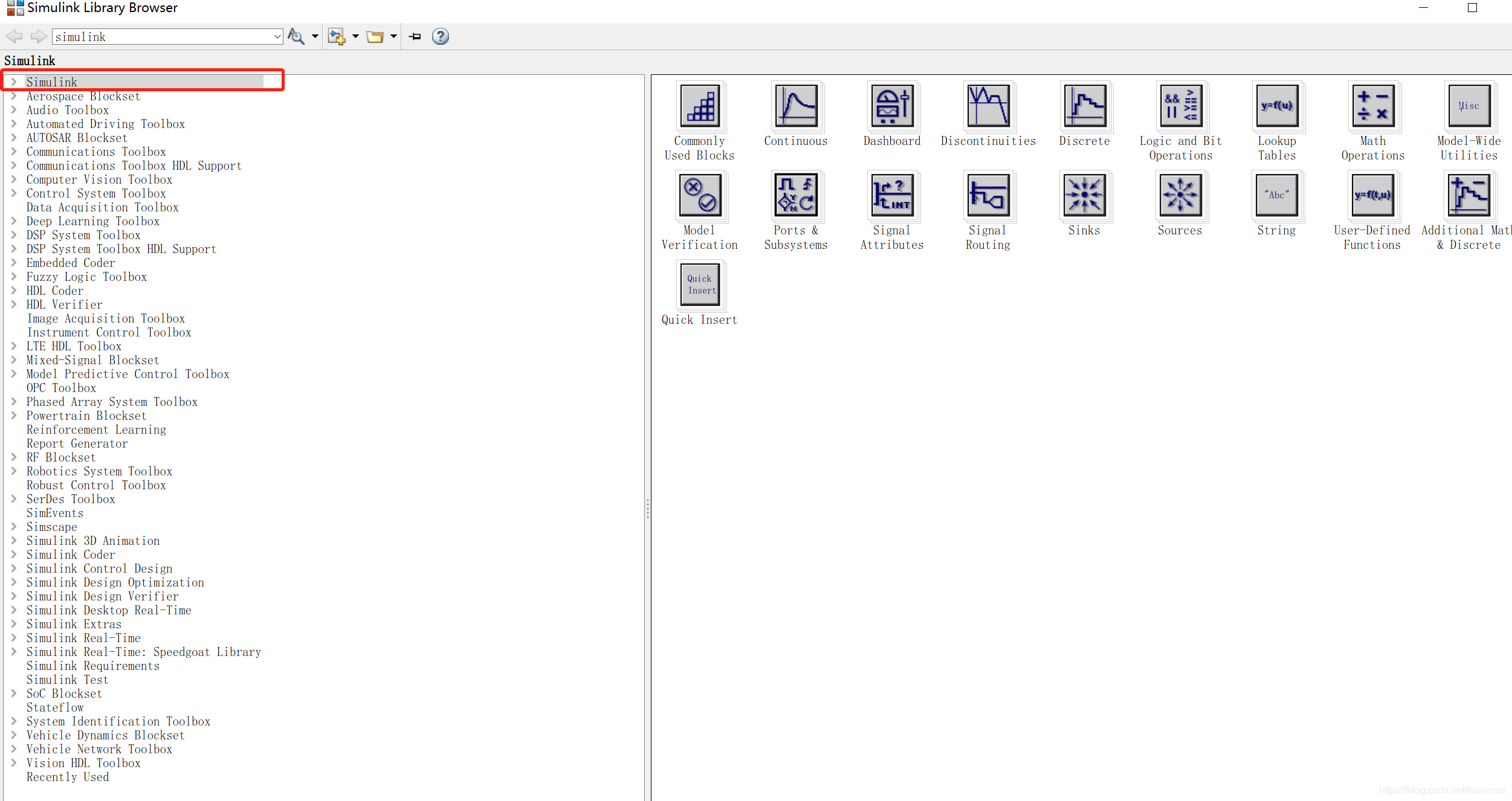 之前编译通过的工程,突然编译报错,仔细查看后,显示simulink library缺失,在MATLAB2019a的library browser中没有找到simulink基础库。