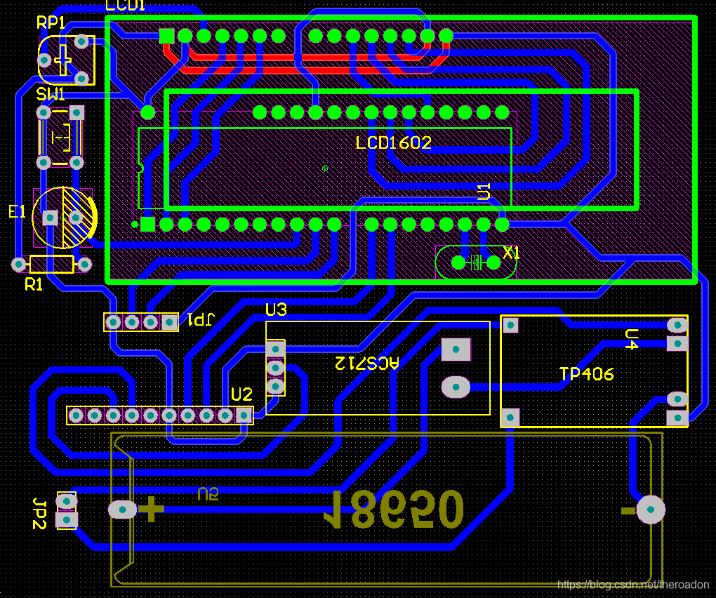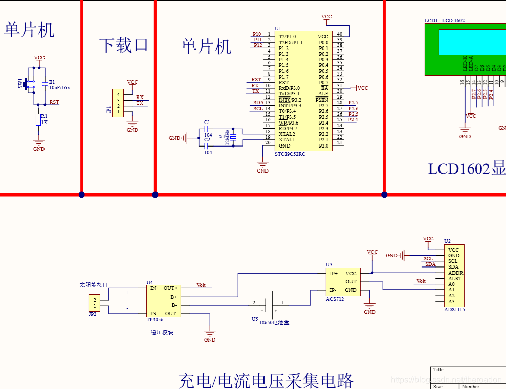 锂电池组的电流、电压、将被系统控制器通过控制AD转换芯片及时采集,并以LCD1602显示。