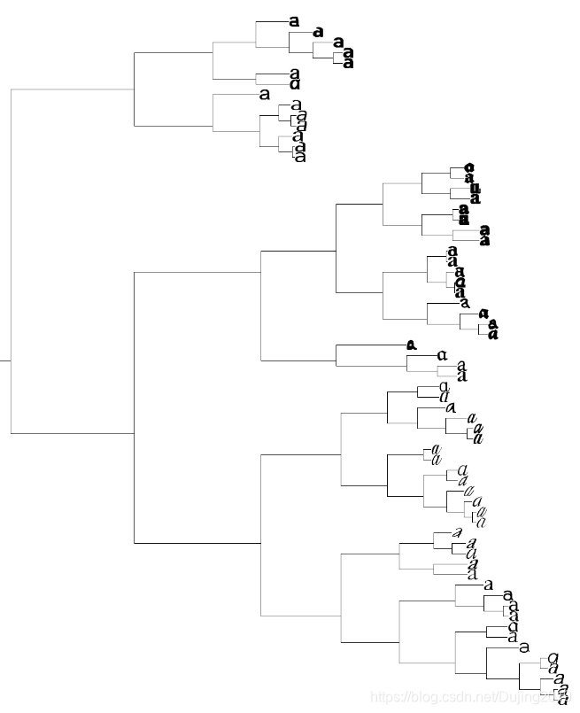 tree = hcluster.hcluster(projected) hcluster.draw_dendrogram(tree,imlist,filename='fonts.jpg')