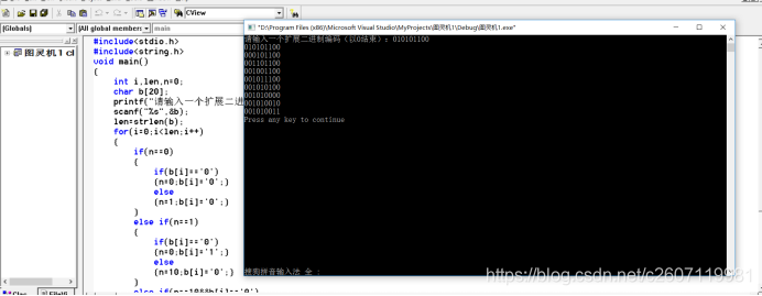 - 利用debug调试,发现扩展二进制编码虽然可以正确输出,但其所在数组存储不对,没有依次存储,导致有乱码情况,检查发现是++运算符的使用有误,导致数组出现空值,通过对其修改实现正确输出。