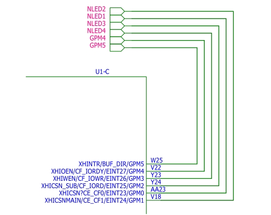 从上面的原理图可以得知,LED与CPU引脚的连接方法如下,低电平点亮。