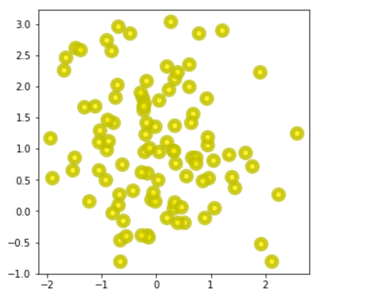 ax.scatter(x,y,s=100,c='#FFF000',alpha=0.8,linewidth=5,edgecolors='y')