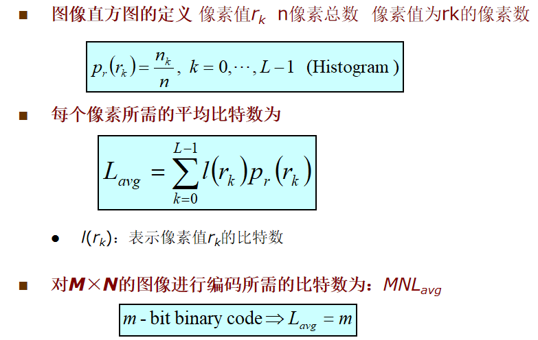 理论上,最佳无失真编码的平均码长可以无限接近、但总是大于或等于图像熵H。存在任意接近该下限的编码方法。
