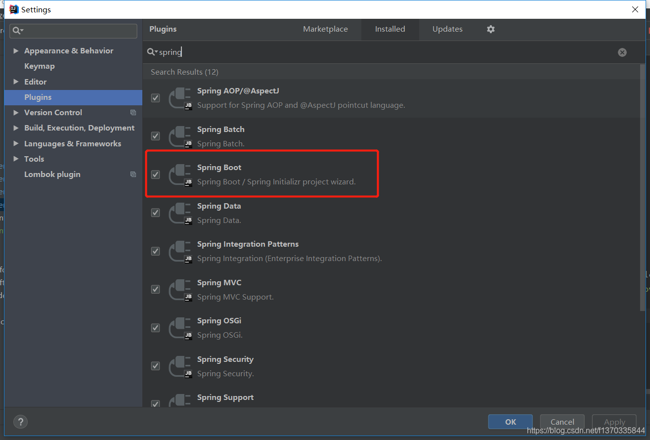 解决方法如图,看下已安装的springboot插件是不是钩被去掉了,要是没有则去marketplace搜索安装即可,重启idea
