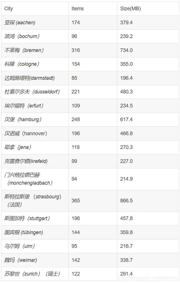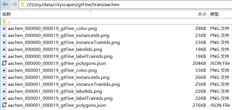 train集总共有2975张png格式的大小为2048 x 1024的0-255的RGB图片,按照城市名称,有18个文件夹对应德国的16个城市,法国一个城市和瑞士一个城市: