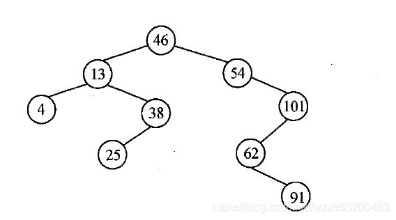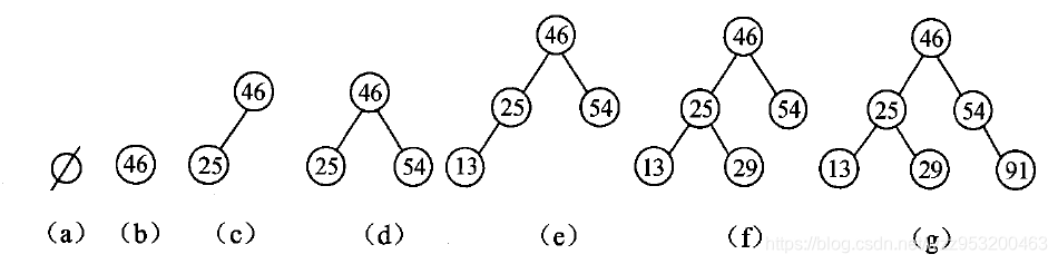 插入{46,25,54,13,29,91}关键字序列示意图: