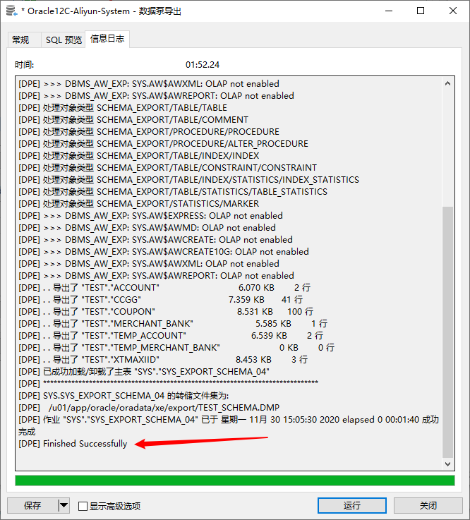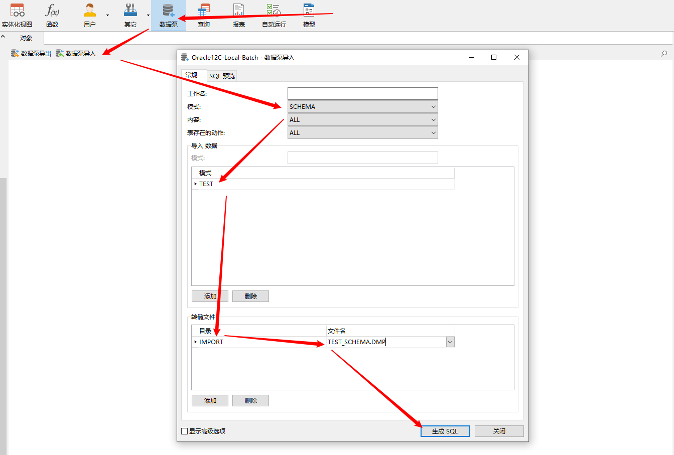 -- 文件名选择导出时自定义的TEST_SCHEMA.DMP