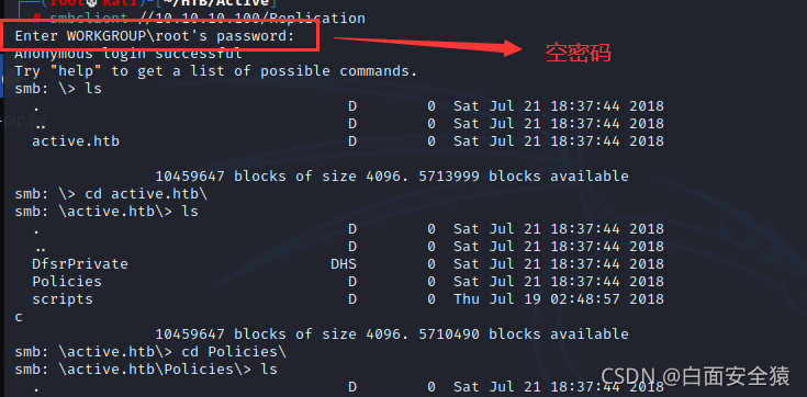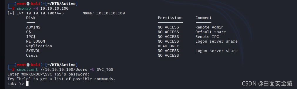 通过nmap扫描得知active.htb安装在AD域中,并且开放了smb服务