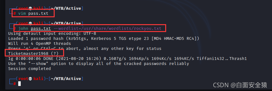 cpassword是组策略密码可以使用kali自带的工具进行破解