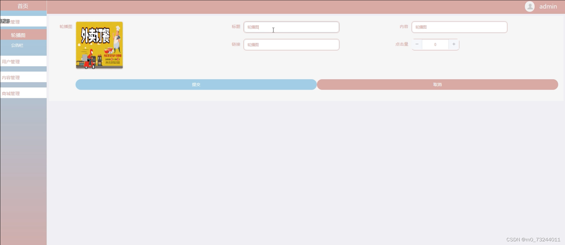 校园订餐系统系统主要功能模块包括站点管理(公告栏、轮播图)用户管理(管理员、普通用户)、内容模块(餐厅资讯、资讯分类列表)、商城管理(菜单列表、分类列表、订单列表),采取面对对象的开发模式进行软件的开发和硬体的架设,能很好的满足实际使用的需求,完善了对应的软体架设以及程序编码的工作,采取MySQL作为后台数据的主要存储单元,采用SSM框架、Java技术、Ajax技术进行业务系统的编码及其开发,实现了本系统的全部功能。本次报告,首先分析了研究的背景、作用、意义,为研究工作的合理性打下了基础。针对校园订餐系统系统的各项需求以及技术问题进行分析,证明了系统的必要性和技术可行性,然后对设计系统需要使用的技术软件以及设计思想做了基本的介绍,最后来实现校园订餐系统系统和部署运行使用它。