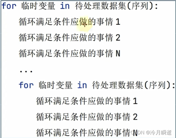 与while循环不同点:for循环没有循环条件,它只能从被处理的数据集中,依次取出内容进行处理