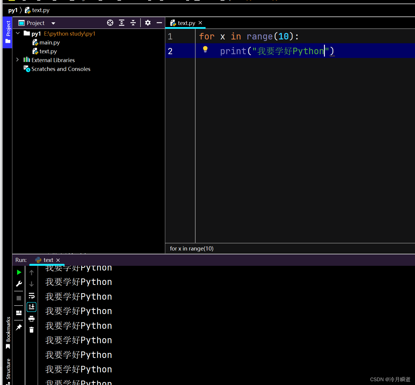 与if 语句一样,使用缩进的方式来表示while语句中要执行的代码部分