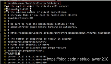 修改zk1/conf/zoo.cfg