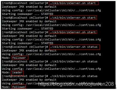 分别修改zk2,zk3的myid,zoo.cfg文件内容