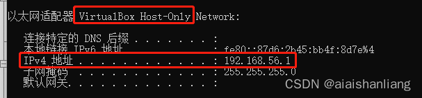 首先cmd输入ipconfig,查看本机虚拟IP网段,如下图
