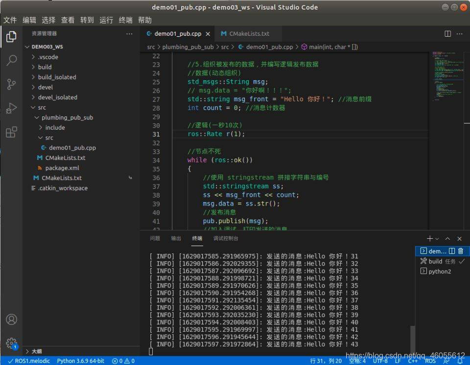 catkin make isolated:build时可以成功运行出demo03_pub_person