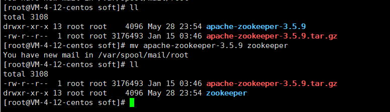重命名:mv apache-zookeeper-3.5.9 zookeeper