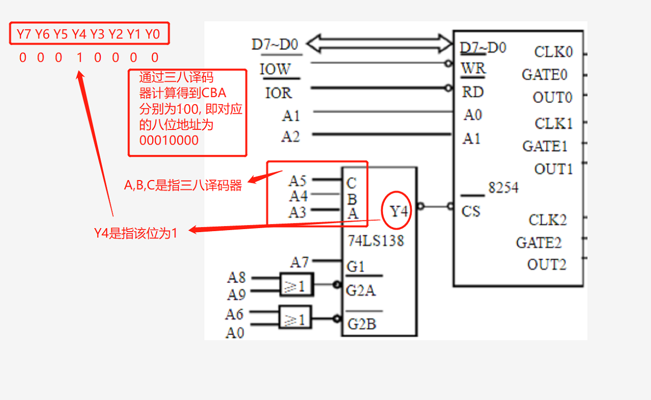 详细的计算出下图中8254的四个端口地址为多少?