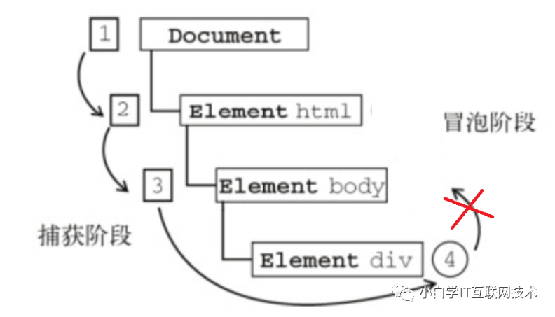 1. 捕获阶段: 事件从最顶层元素依次往子元素方向传播.