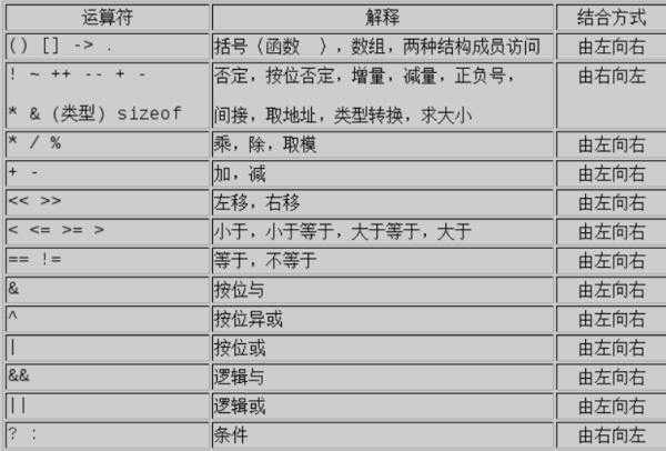 语言的i运算符包括单目运算符、双目运算符、三目运算符,优先级如下: