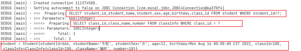 - 第一步:通过已知的学生主键获取学生信息(包含外键信息)