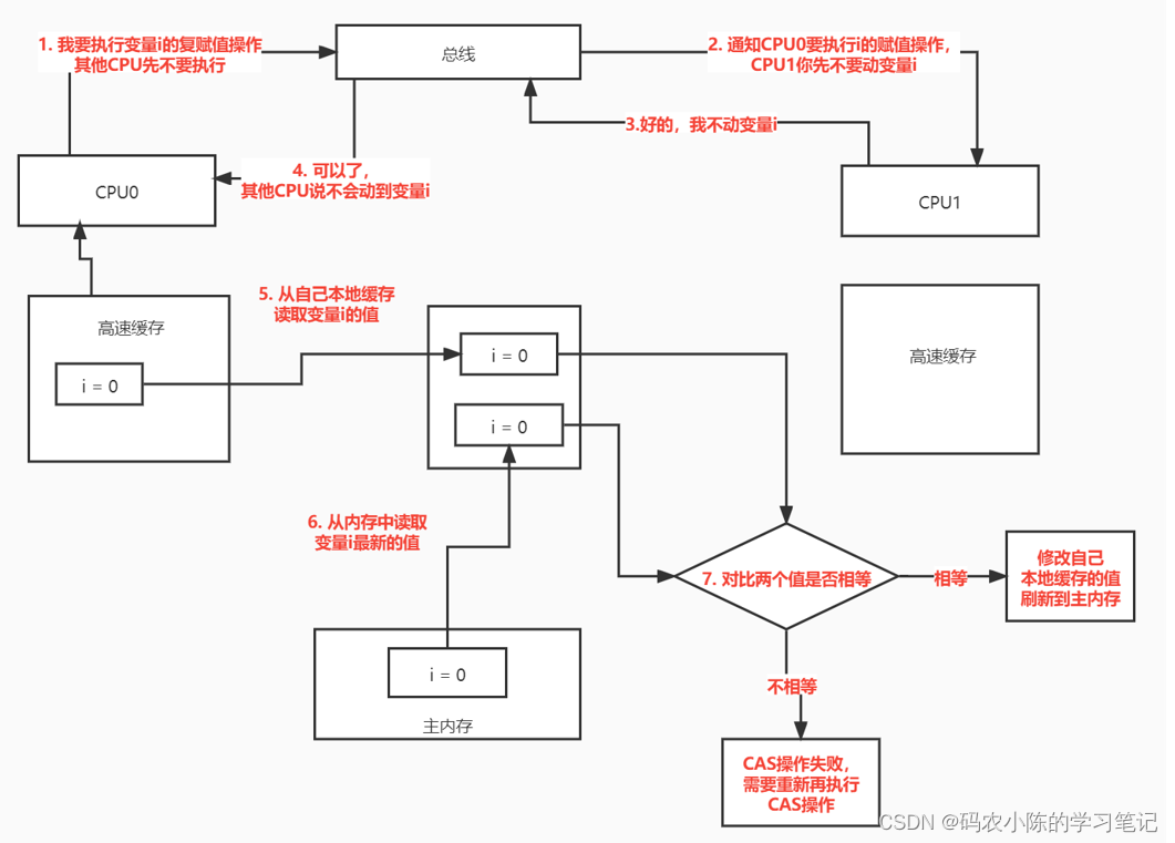 老王:小陈啊,这个就是CAS在底层操作的原理,它底层还是通过加锁来保证原子性的,同一个时间只能有一个CPU能申请到CAS的操作权限,你理解了吗?