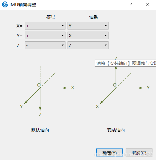 选项, 对应的 XYZ 设置如下,因为 iIMU-FSAS 的坐标是