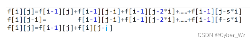 f[i][j]=f[i-1][j]+f[i][j-i]