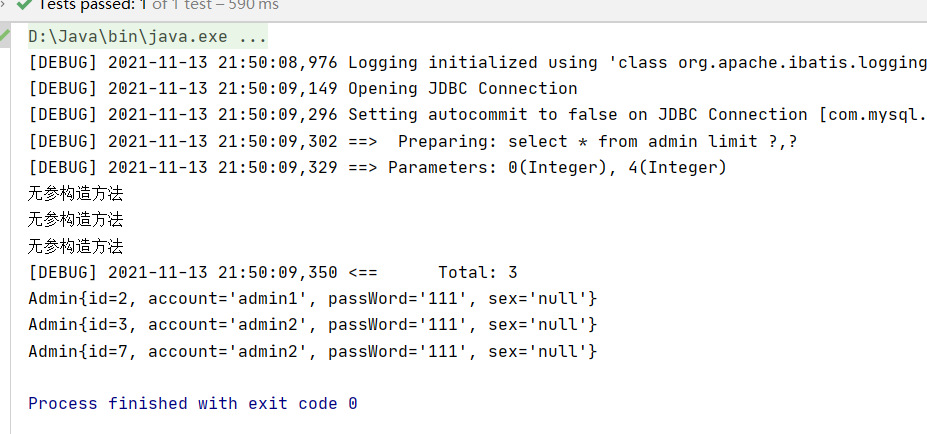 resultType=“Admin” 返回值的类型 创建一个对对象
