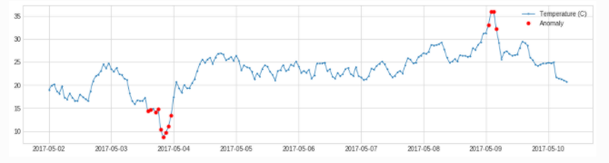 from adtk.pipe import Pipeline steps = [ ("deseasonal", ClassicSeasonalDecomposition()), ("quantile_ad", QuantileAD(high=0.995, low=0.005)) ] pipeline = Pipeline(steps) anomalies = pipeline.fit_detect(s) plot(s, anomaly=anomalies, ts_markersize=1, anomaly_markersize=2, anomaly_tag="marker", anomaly_color='red');