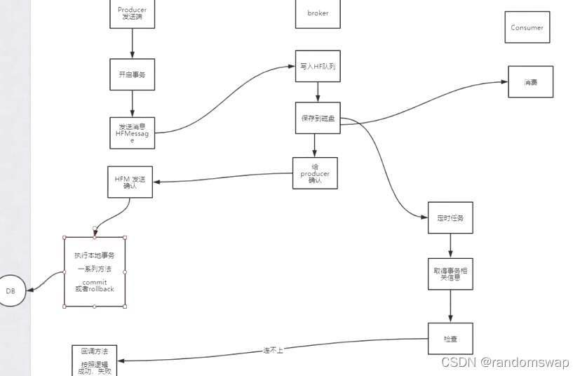 broker将发送检查消息来检查事务状态,并将调用方法来获取本地事务状态