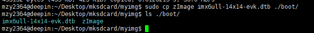 sudo cp zImage imx6ull-14x14-evk.dtb ./boot/