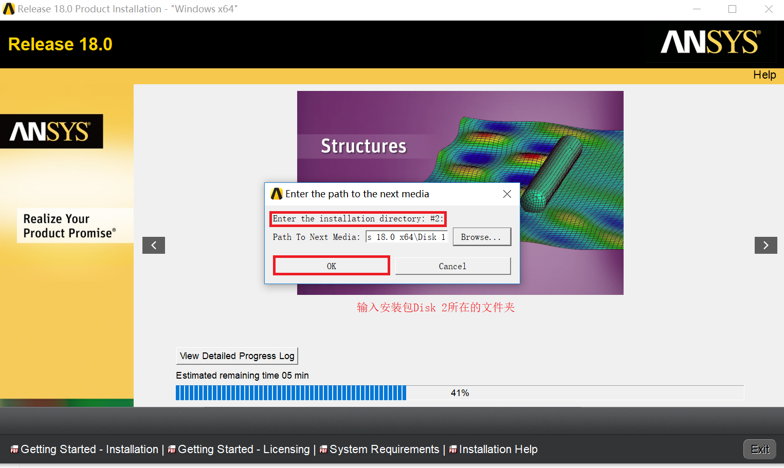 11.在跳出的对话框中选择安装包中Disk 2文件夹,如我的是C:\ANSYS Products 18.0 win64\Disk 2。
