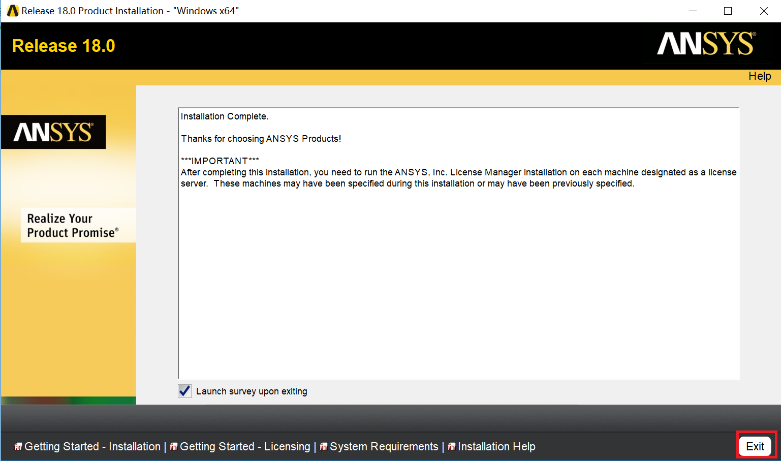 12.点击Exit,完成安装。