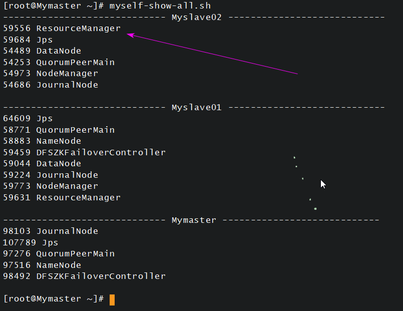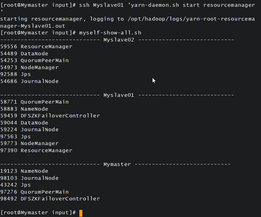 ssh Myslave02 'yarn-daemon.sh start resourcemanager'