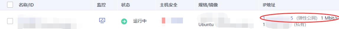 本人使用的是华为云的云耀云,其他的也可以,申请方式在网上有很多教程,本人在这就不做说明了。以本人用的华为云为例,需要注意购买服务器以后,你可以看到两个IP地址,我们使用的是弹性公网IP(如下图);其次需要注意网上有教程说购买以后进行一次密码修改,那个密码就是远程连接的密码。
