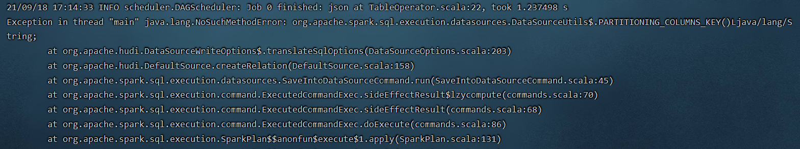 Exception in thread “main” java.lang.NoSuchMethodError: org.apache.spark.sql.execution.datasources.DataSourceUtils$.PARTITIONING_COLUMNS_KEY()Ljava/lang/String;
