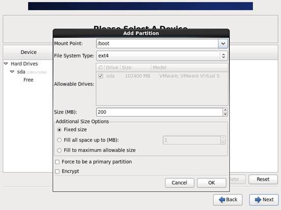 32、/boot 分区 200 M 空间足够