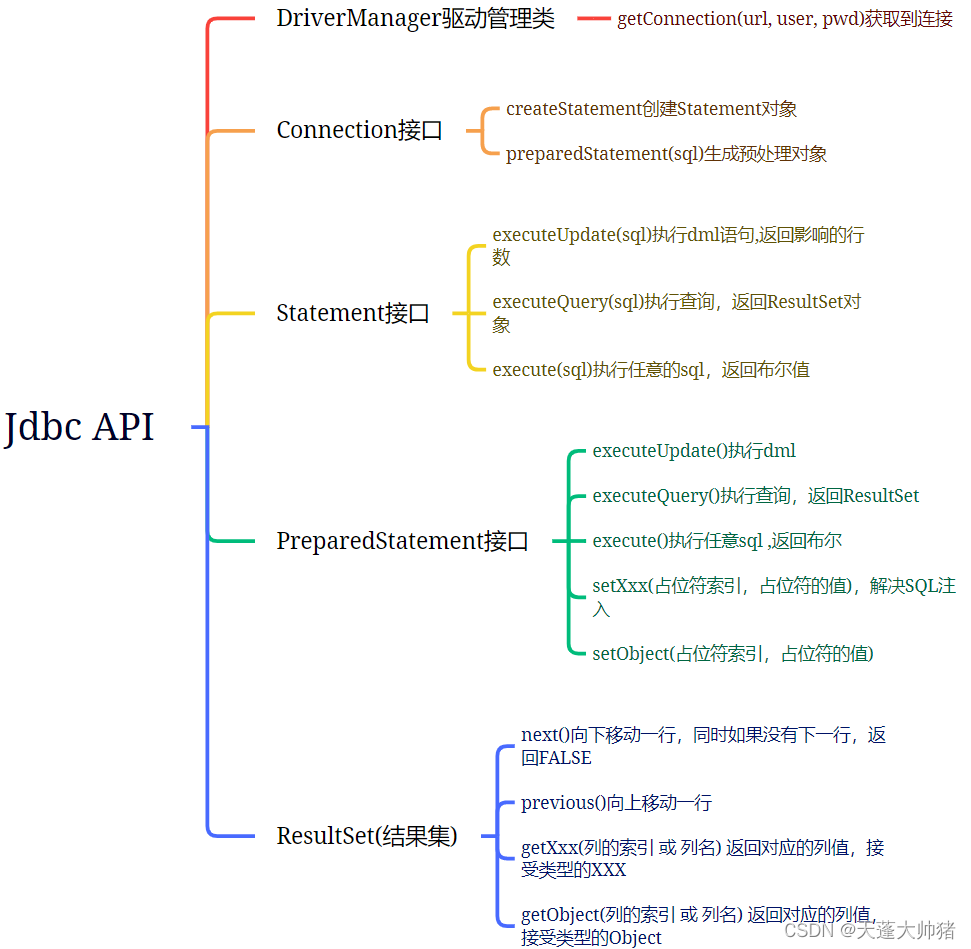JDBC API是一系列的接口,它统一和规范了应用程序与数据库的连接、执行SQL语句,并到得到返回结果等各类操作,相关类和接口在java.sql与javax.sql包中