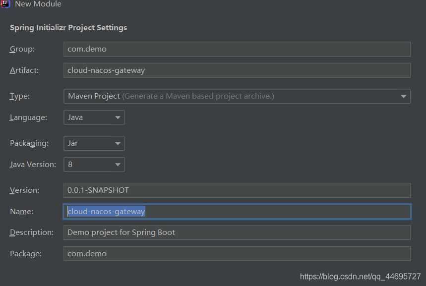 <description>Demo project for Spring Cloud Nacos</description>