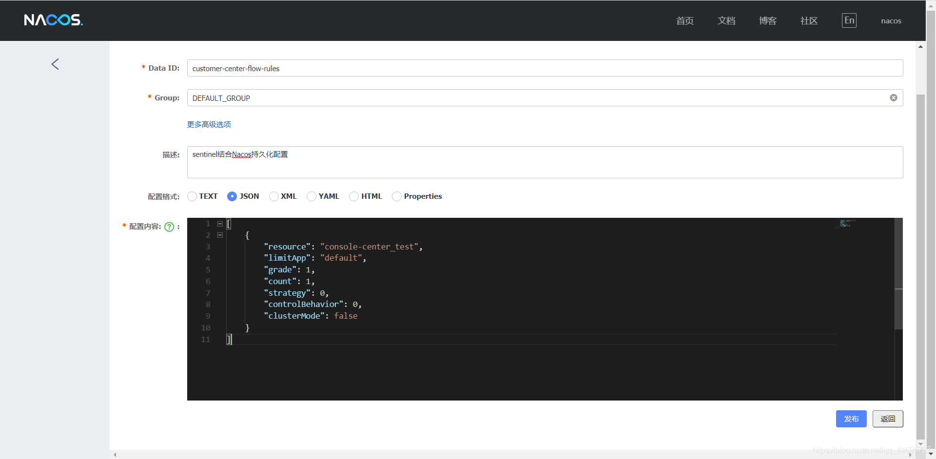 sentinel结合Nacos持久化配置