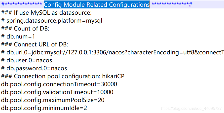 在/userpath/nacos/conf下找到文件application.properties,定位到 Config Module Related Configurations