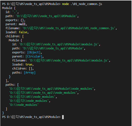 那之前我们说过每个文件都是一个独立的模块,模块内可以使用module属性,那假设我们在01.js中打印module会发生什么呢?