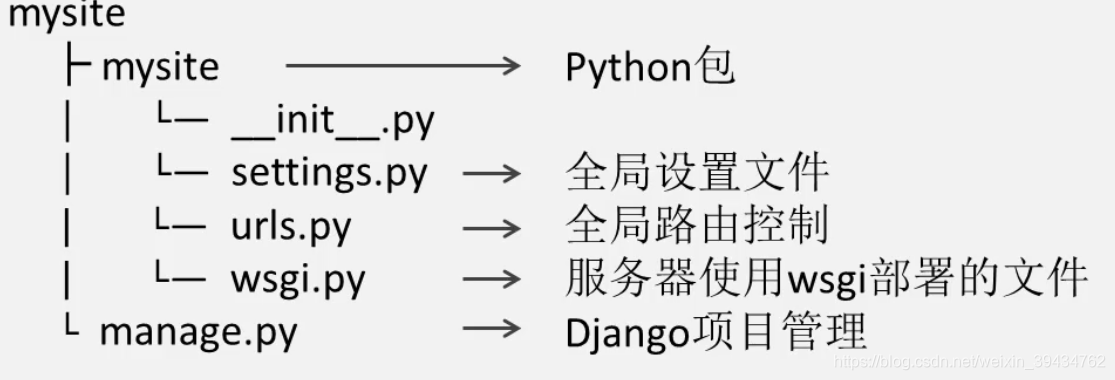 新建的mysite项目的整体结构: