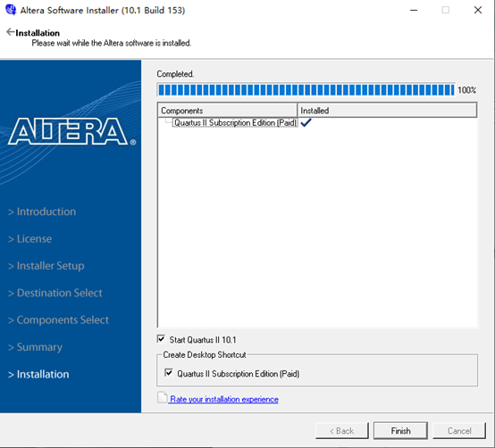 安装路径需要选择 Quartus II 的安装路径,此时 Device 安装可自动识别 Quartus II。