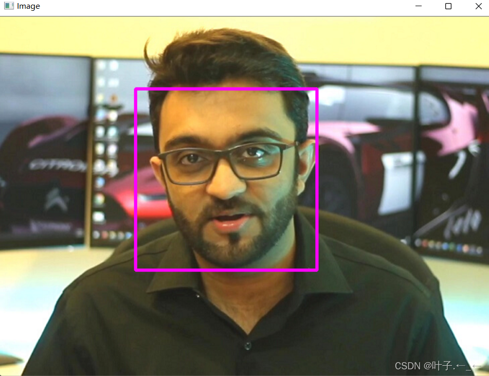 rectangle(img, faces[i].tl(),faces[i].br(), Scalar(255, 0, 255), 3);