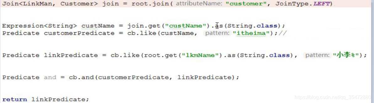 * 也可以继续写root.xx,并对root条件限制,root代表的是本类的查询条件,join是连接表的插叙条件
