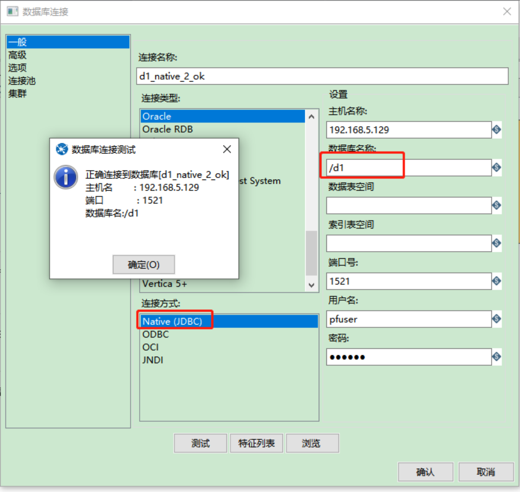 此方式,仅限于连接CDB数据库,测试将PDB替换为CDB,测试连接成功: