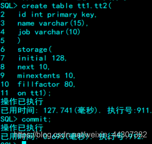 1、创建表时,在STORAGE子句中指定存储表的表空间;