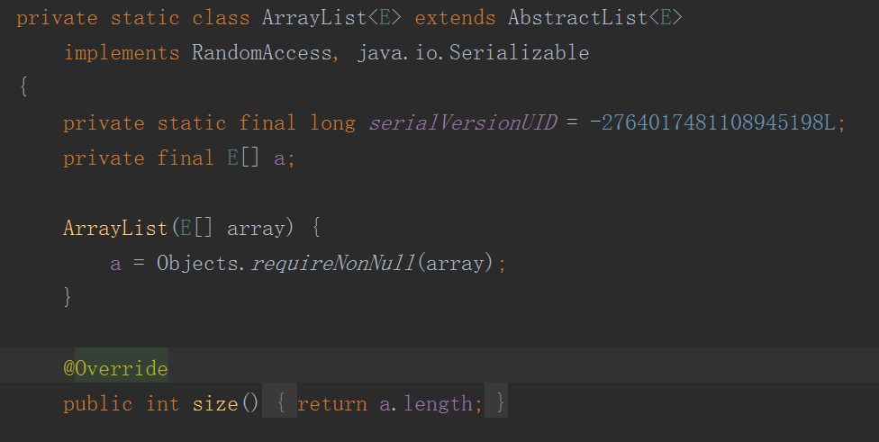 返回了个ArrayList,但是,该ArrayList并不是java.util.ArrayList,而是Arrays的一个内部类。